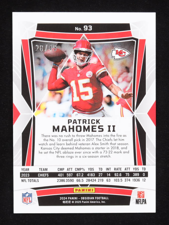 Patrick Mahomes II 2024 Panini Obsidian Red #93 #28/49