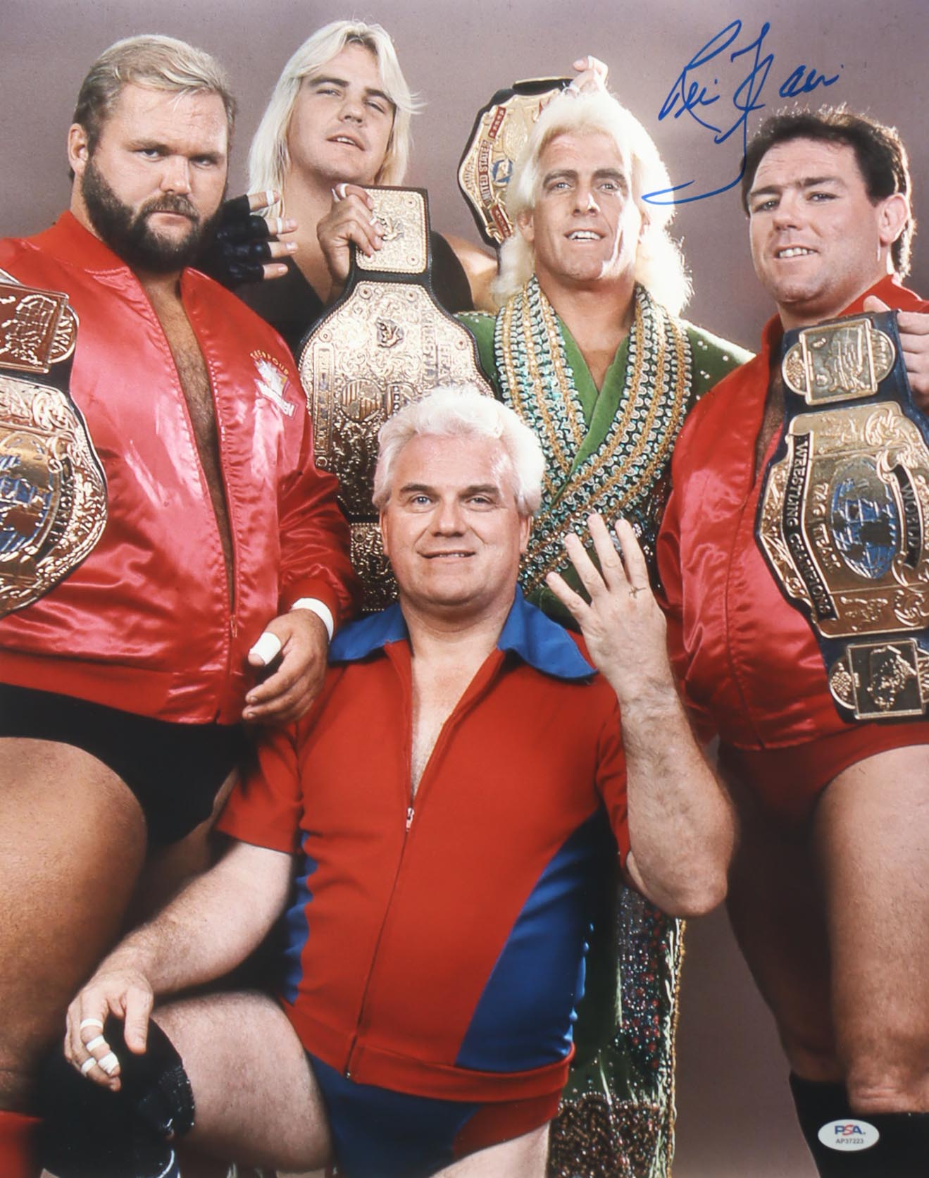 Photo measures approximately 16" x 20" in size and has been hand-signed by Ric Flair (HOF).