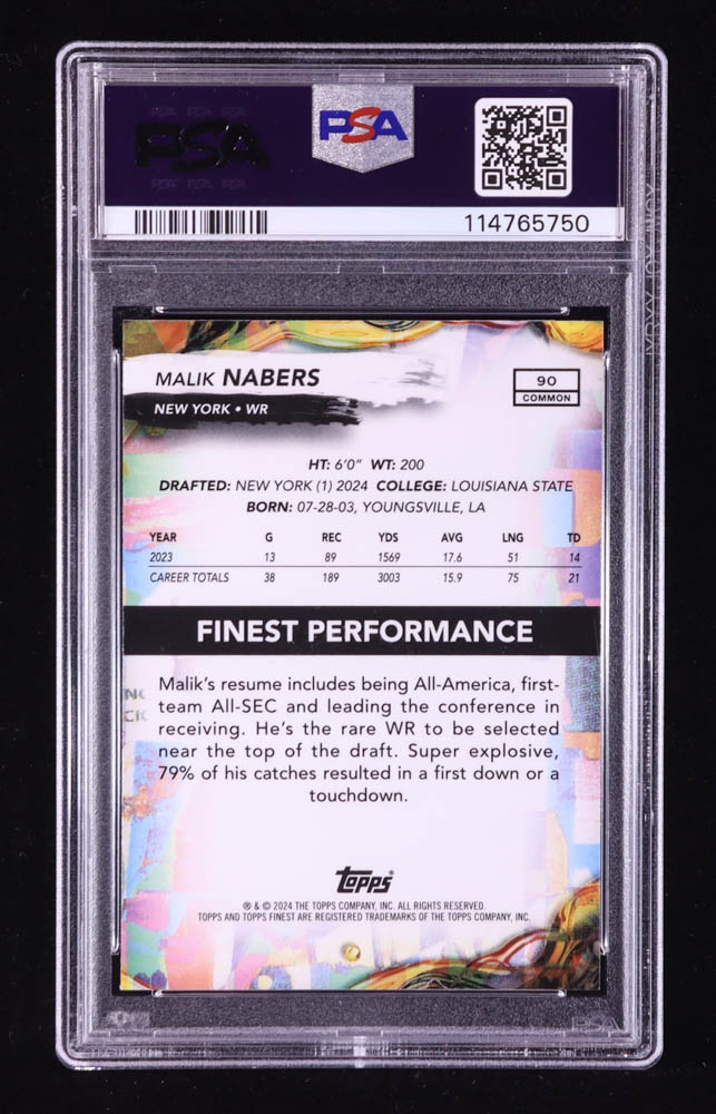 Malik Nabers 2024 Finest #90 RC (PSA 9)