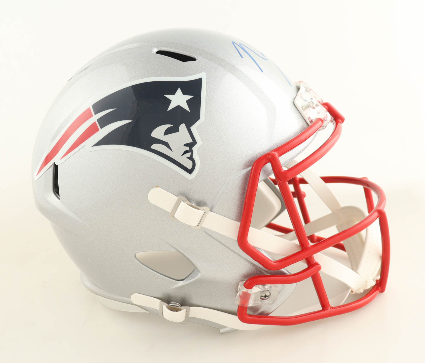 Riddell New England Patriots Full-Size Speed replica helmet. Hand-signed by N'Keal Harry.