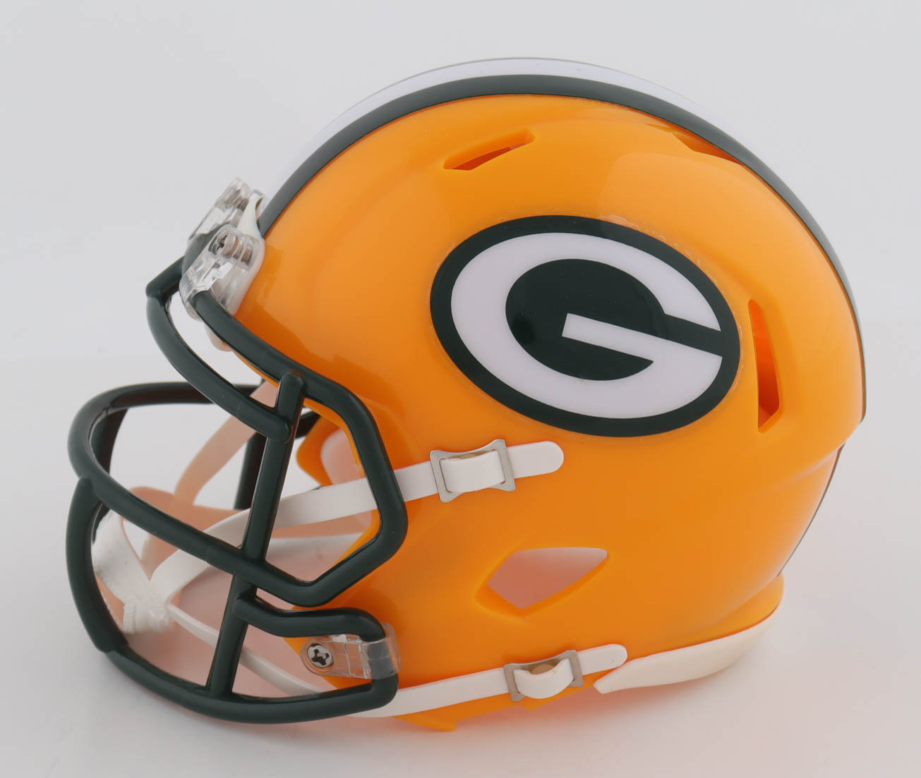 Riddell Green Bay Packers Speed Mini Helmet. Hand-signed by Aaron Jones.