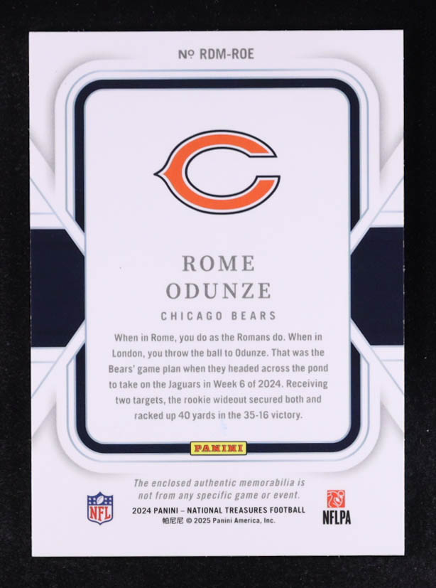 Rome Odunze 2024 Panini National Treasures #RDM-ROE RC #62/99
