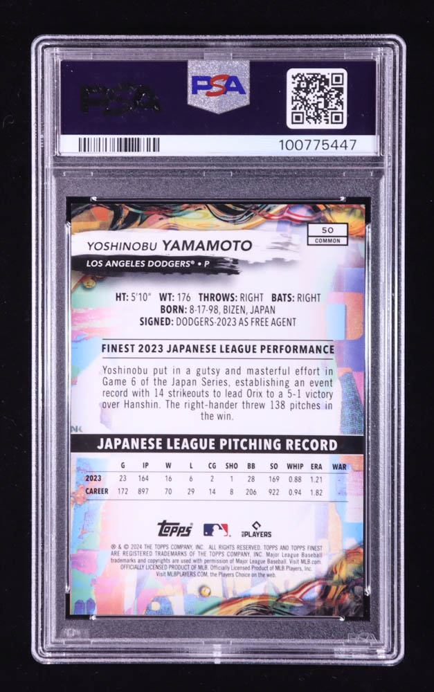 Yoshinobu Yamamoto 2024 Finest Blue Refractors #50 RC #003/200 (PSA 9)