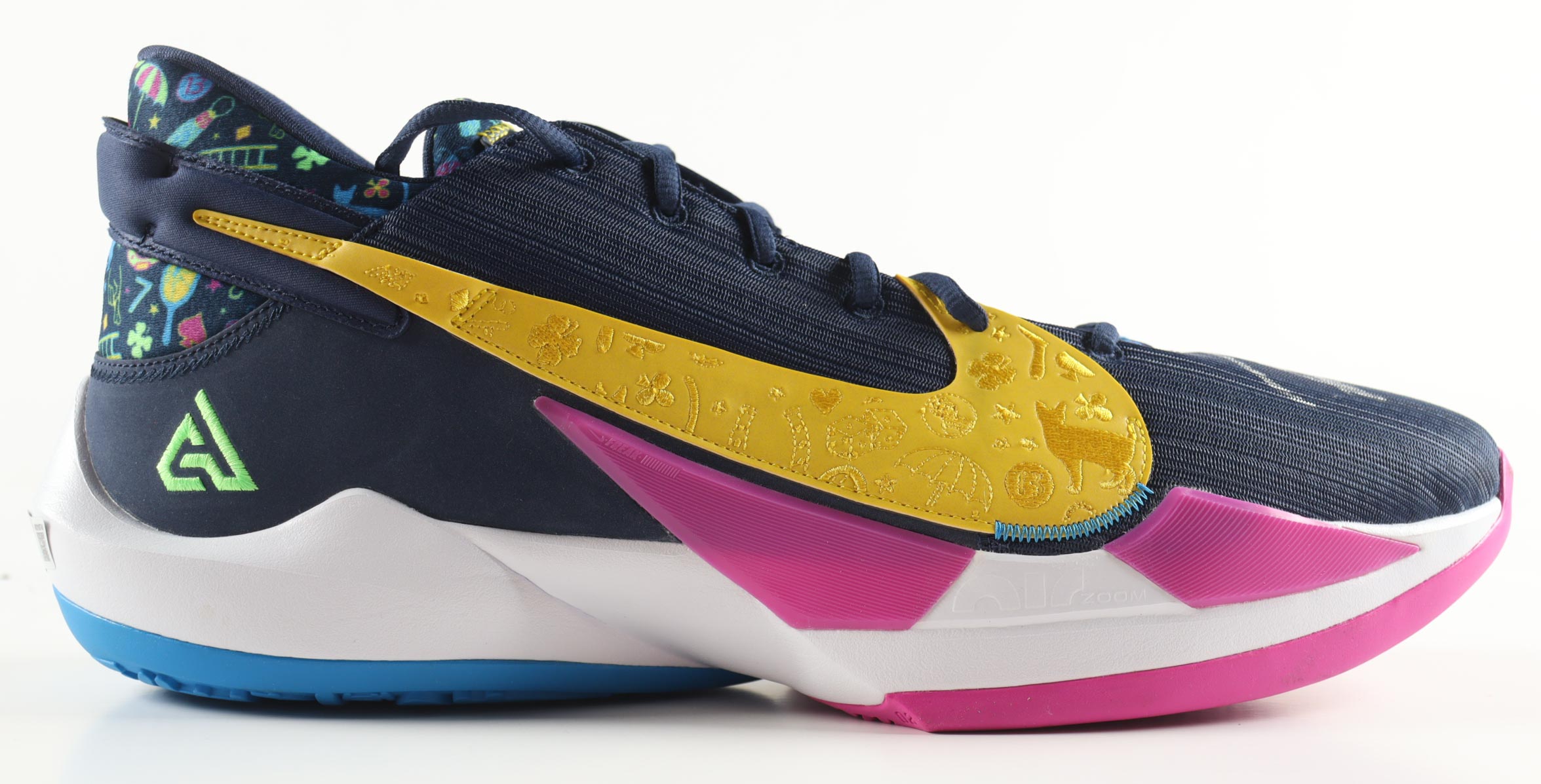 Nike Zoom Freak 2 'Superstitious' Basketball Shoe has been hand-signed by Giannis Antetokounmpo (Milwaukee Bucks).