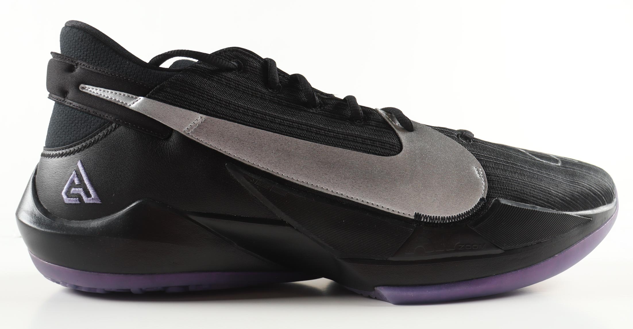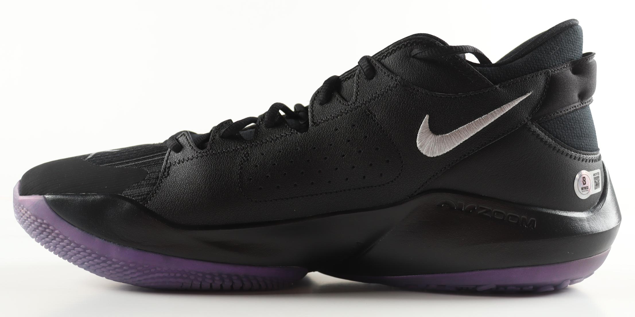 Nike Zoom Freak 2 'Dusty Amethyst' Basketball Shoe has been hand-signed by Giannis Antetokounmpo (Milwaukee Bucks).