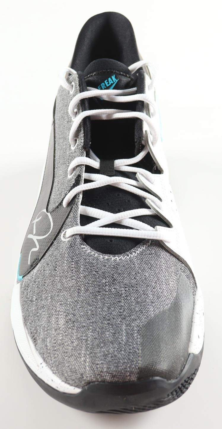 Nike Zoom Freak 2 "Denim" Basketball Shoe has been hand-signed by Giannis Antetokounmpo (Milwaukee Bucks).