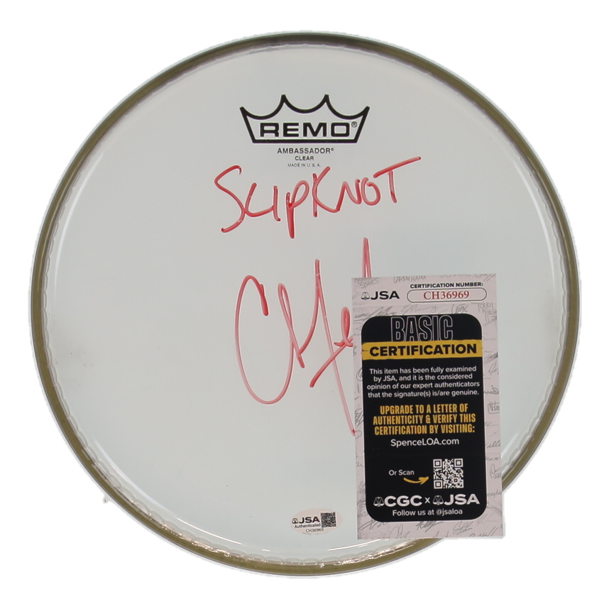 Drumhead measures approximately 10.5" in diameter. Hand-signed and inscribed by Chris Fehn.