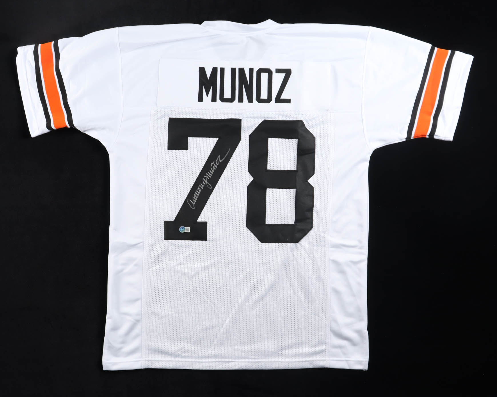 Custom jersey with everything sewn on, size XL. Hand-signed by Anthony Munoz (HOF).