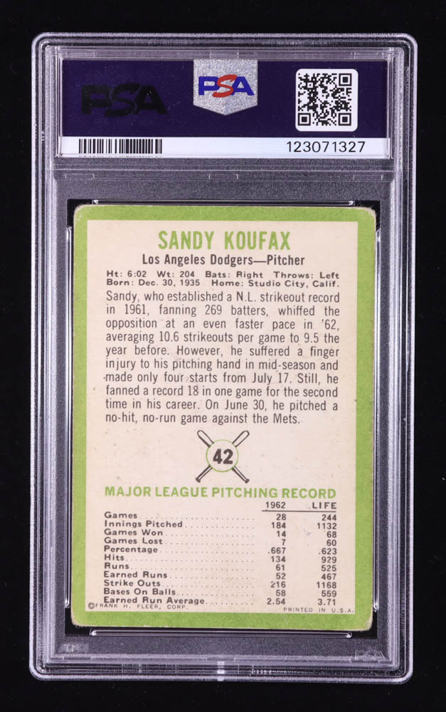 Sandy Koufax 1963 Fleer #42 (PSA 1.5)