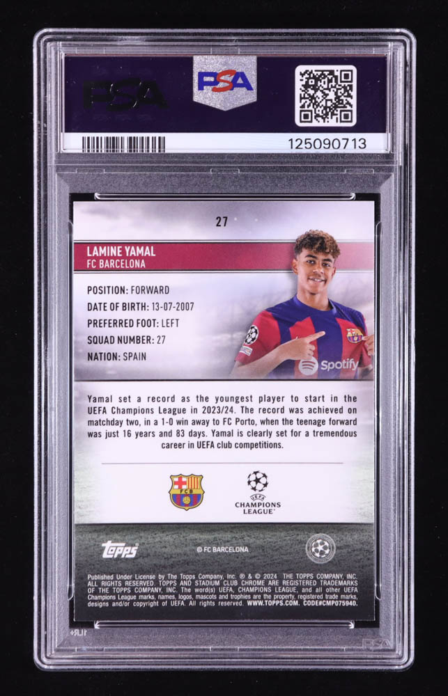 Lamine Yamal 2023-24 Stadium Club Chrome UEFA Champions League #27 RC (PSA 10)