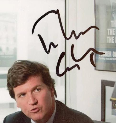 Photo measures 8" x 10" and has been hand-signed by Tucker Carlson.