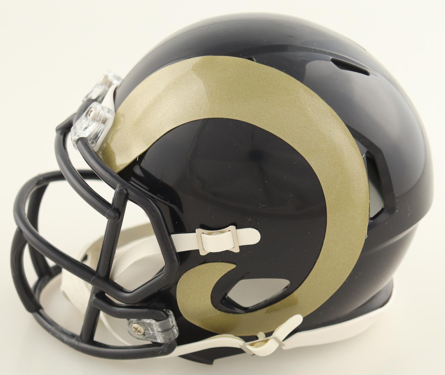 Riddell Los Angeles Rams mini helmet. Hand-signed by Marshall Faulk (HOF).