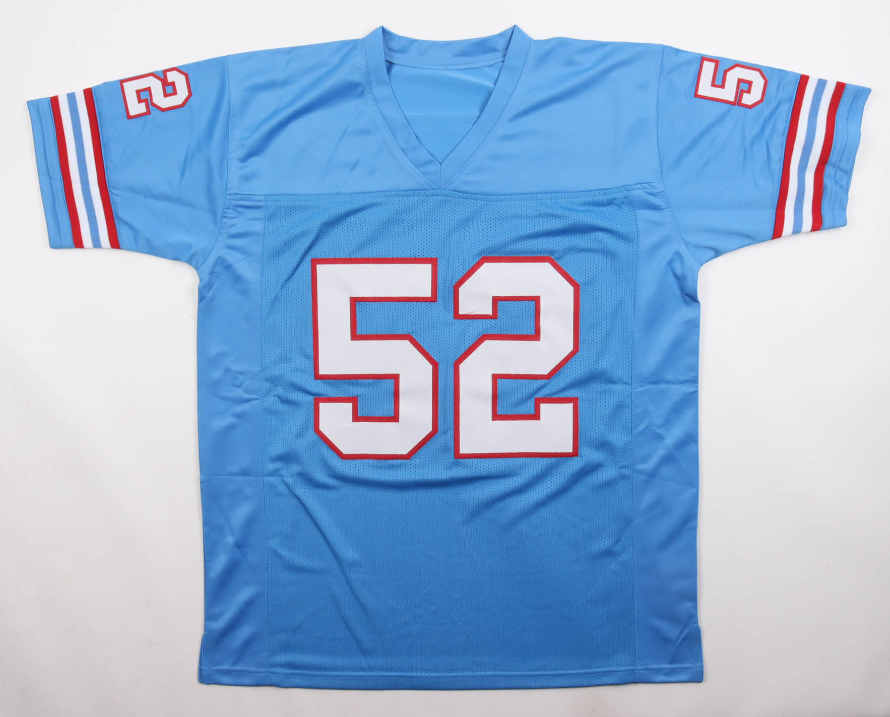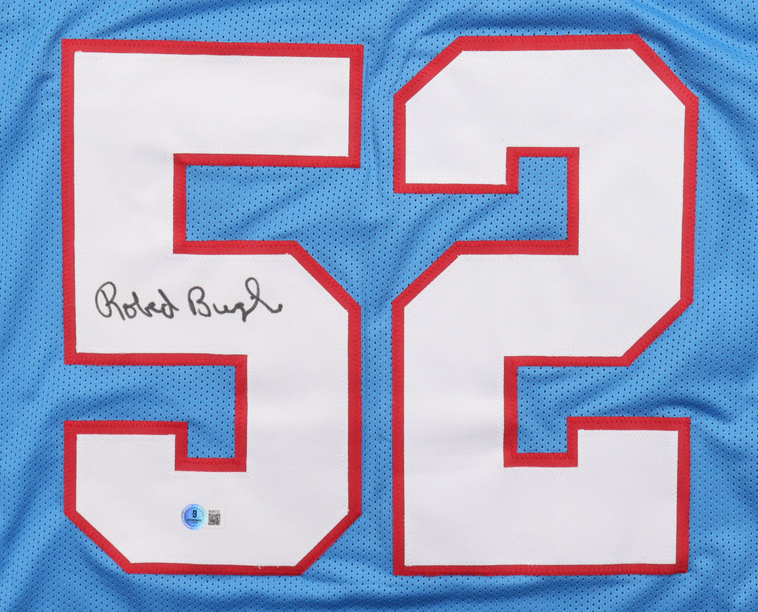 Custom jersey with everything sewn on, size XL. Hand-signed by Robert Brazile (HOF).