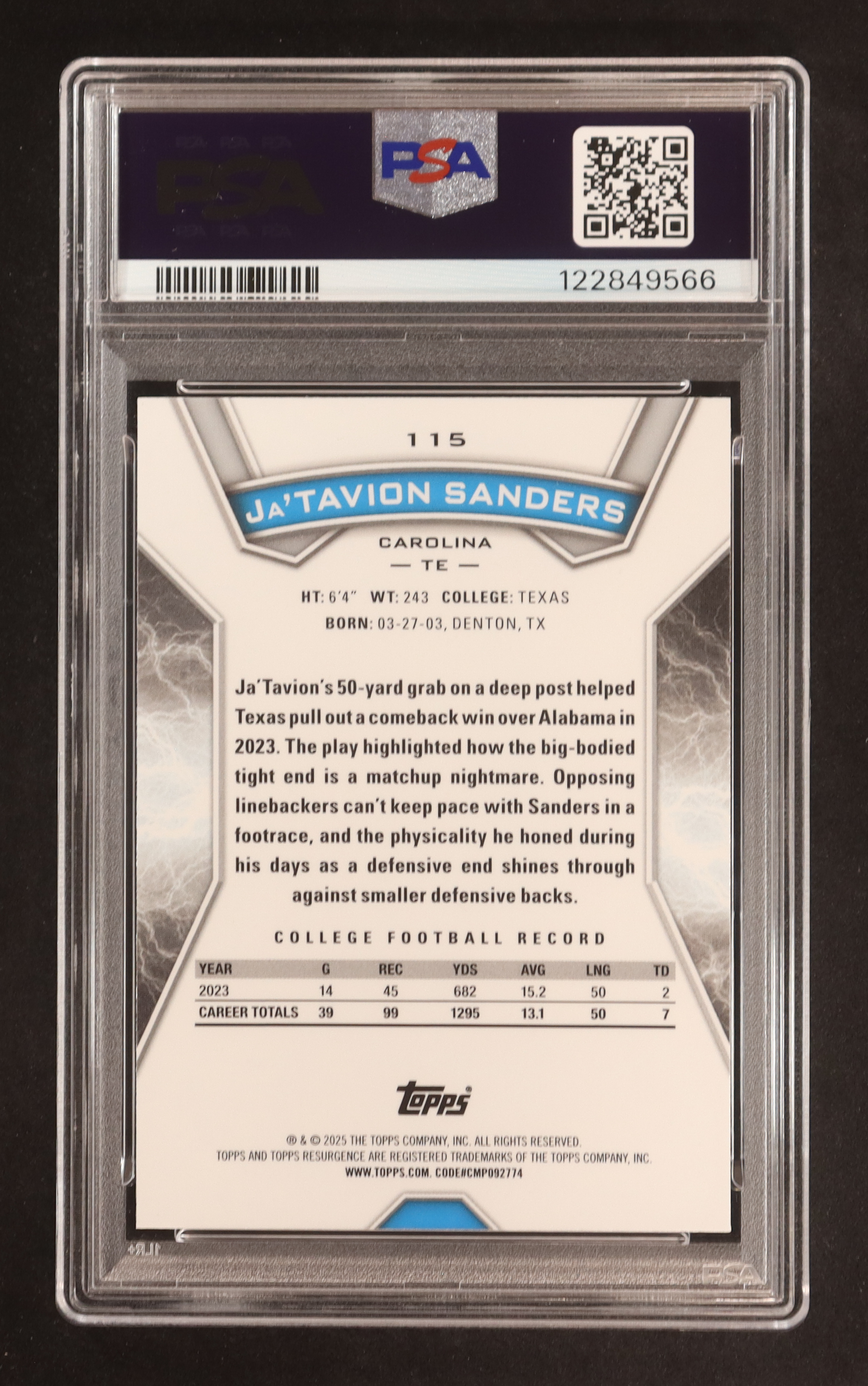 Ja'Tavion Sanders 2024 Topps Resurgence Prism #115 RC (PSA 9)
