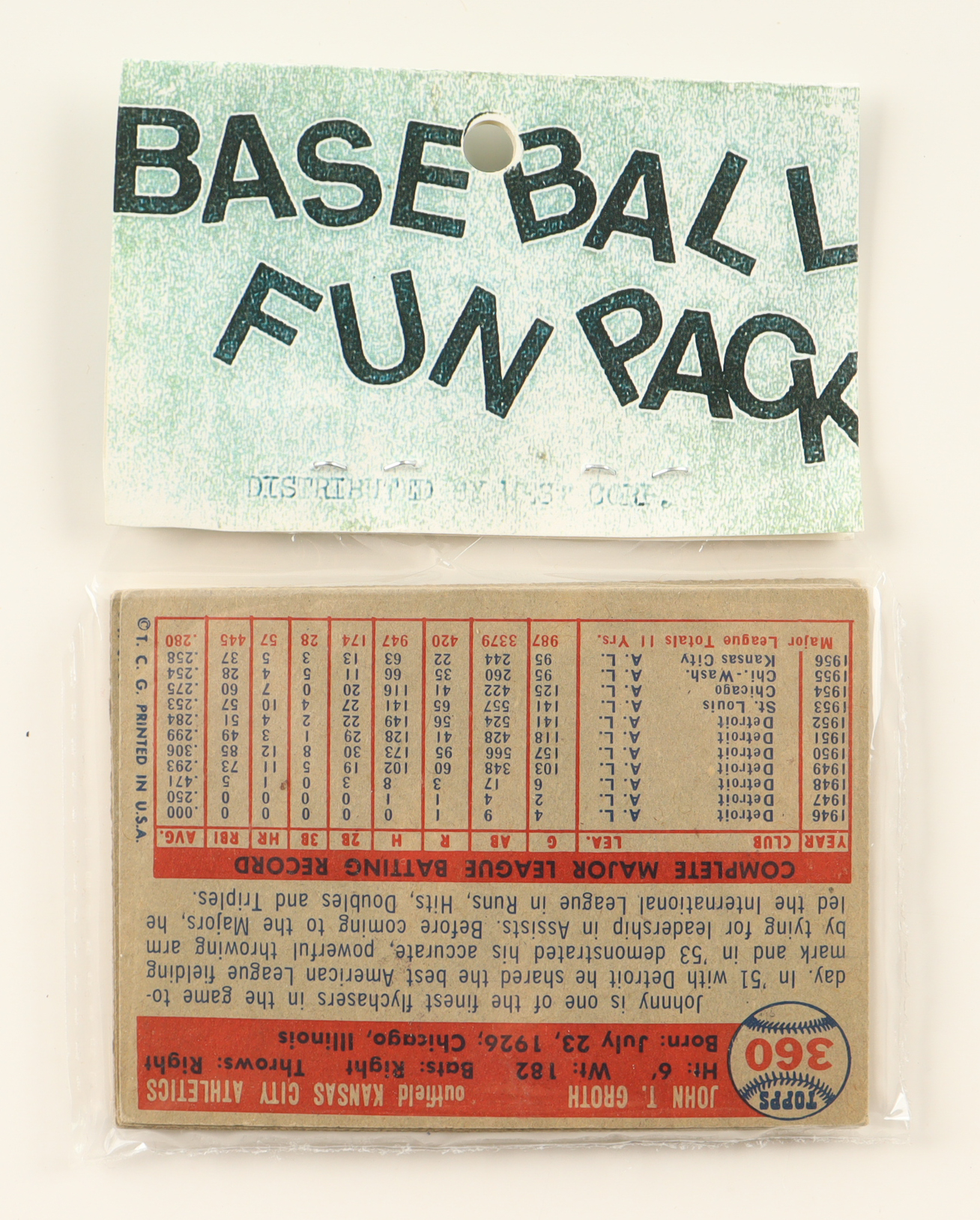 1957 Topps Baseball Card Fun Pack with (10) Cards