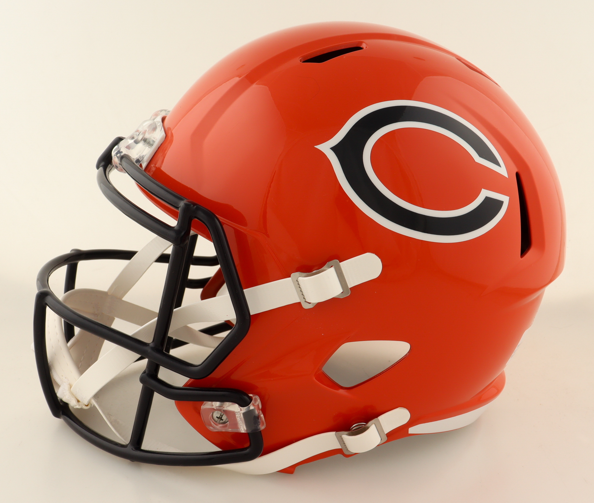 Riddell Chicago Bears full-size speed replica helmet has been hand-signed by Kyle Monangai.