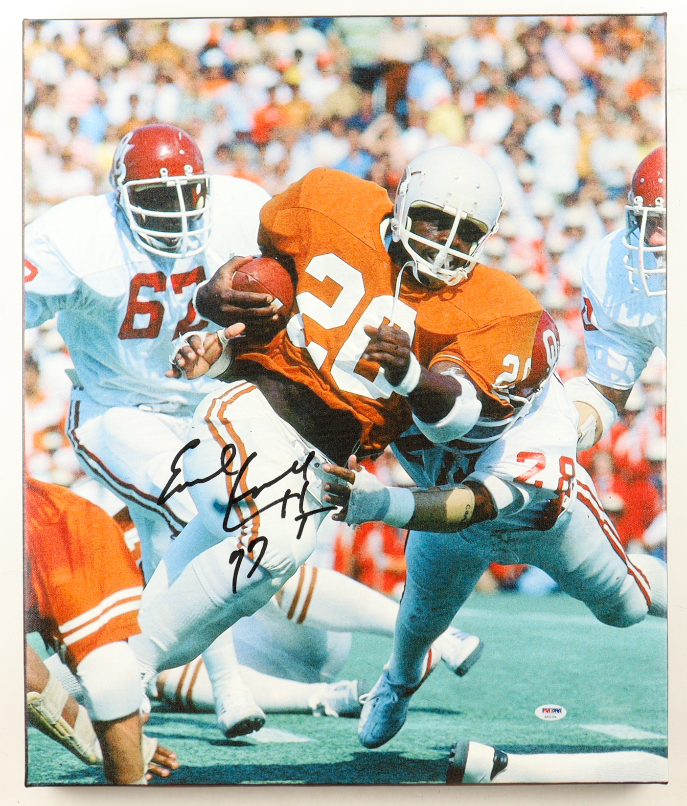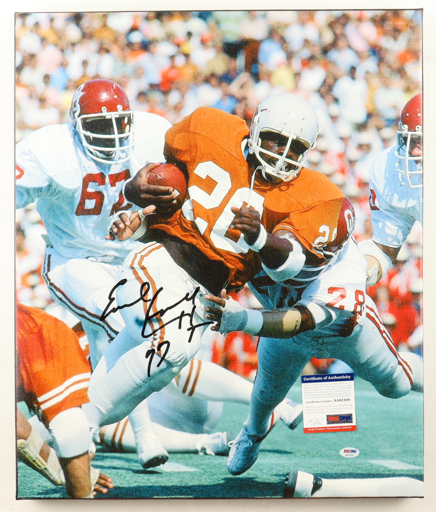 Earl Campbell Signed Texas Longhorns 20x24 Canvas Print Inscribed "HT 77" (PSA)