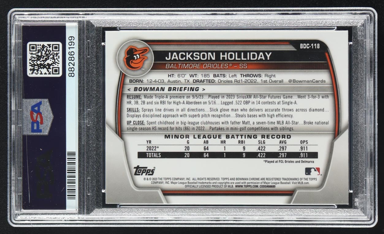 Jackson Holliday 2023 Bowman Draft Chrome #BDC-118 RC (PSA 10)