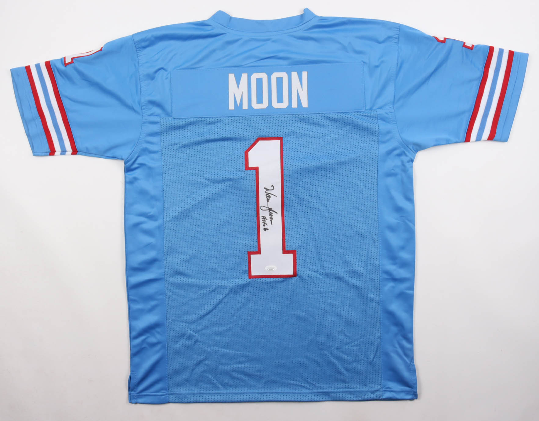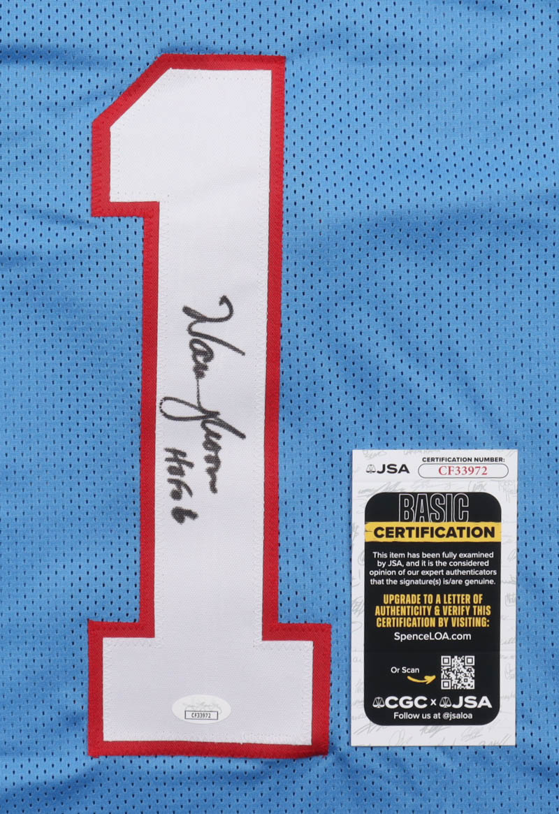 Warren Moon Signed Jersey Inscribed "HOF 06" (JSA)
