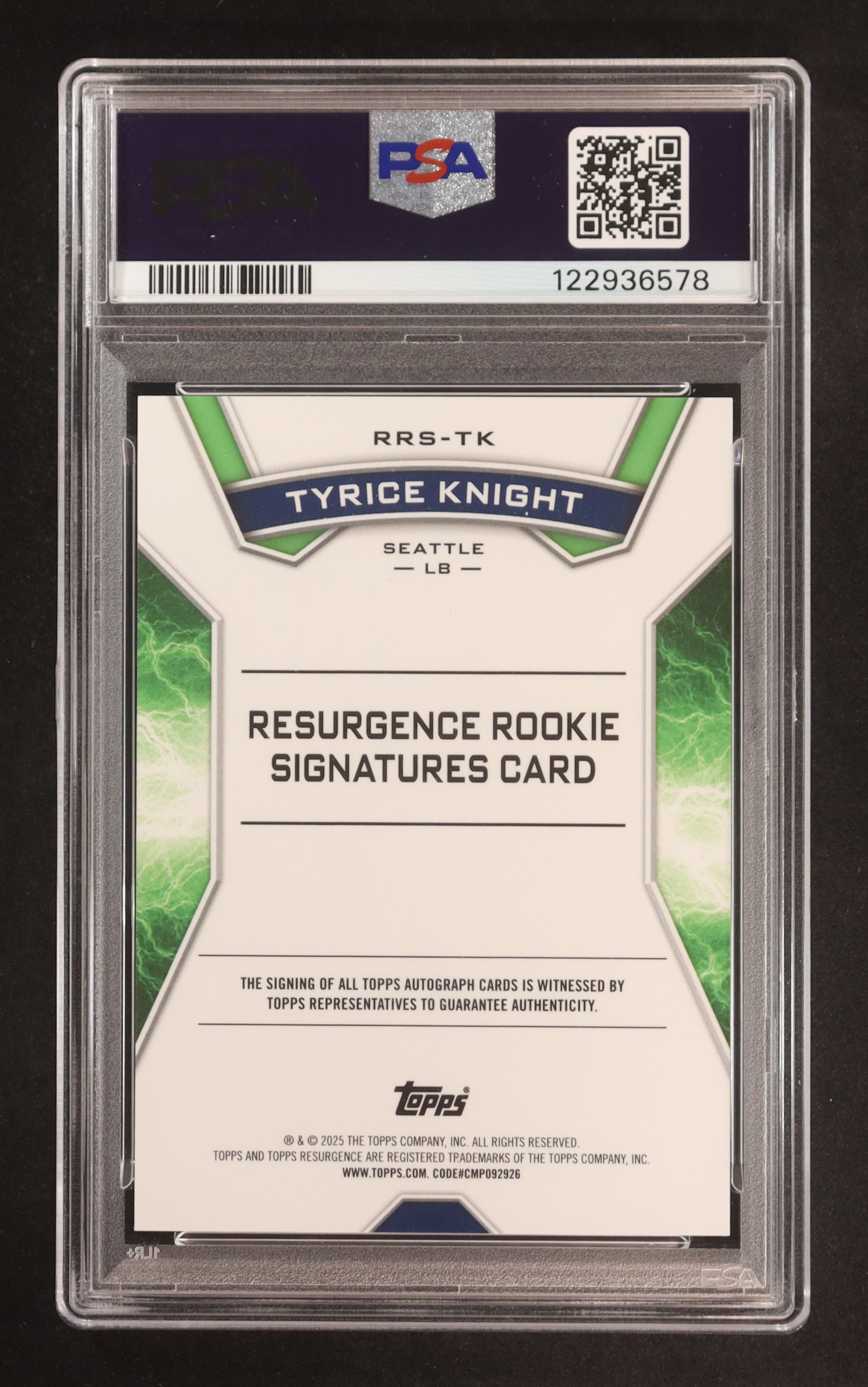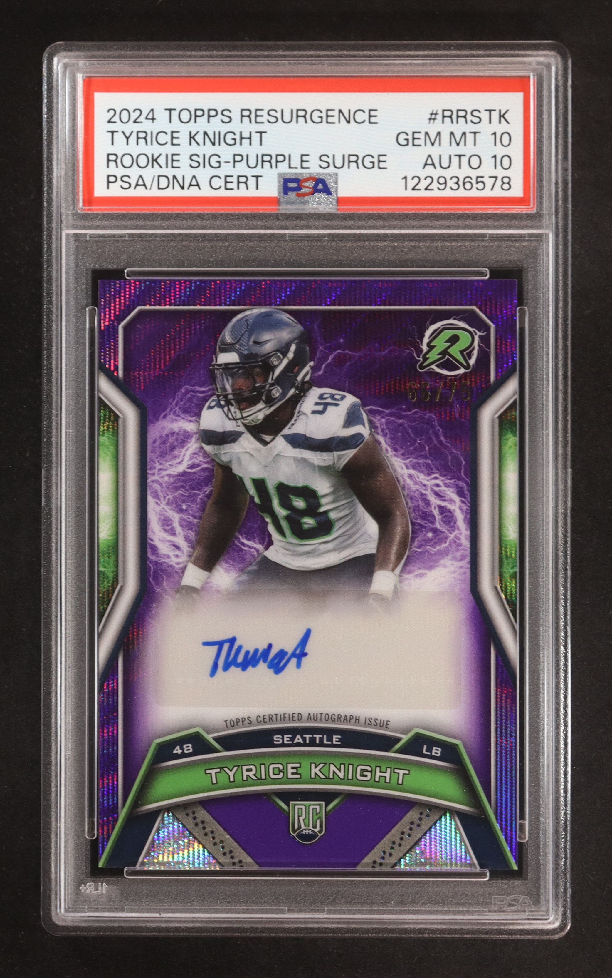 Tyrice Knight 2024 Topps Resurgence Resurgence Rookie Signatures Purple Surge #RRSTK RC #66/75 (PSA 10 | Autograph Graded PSA 10)