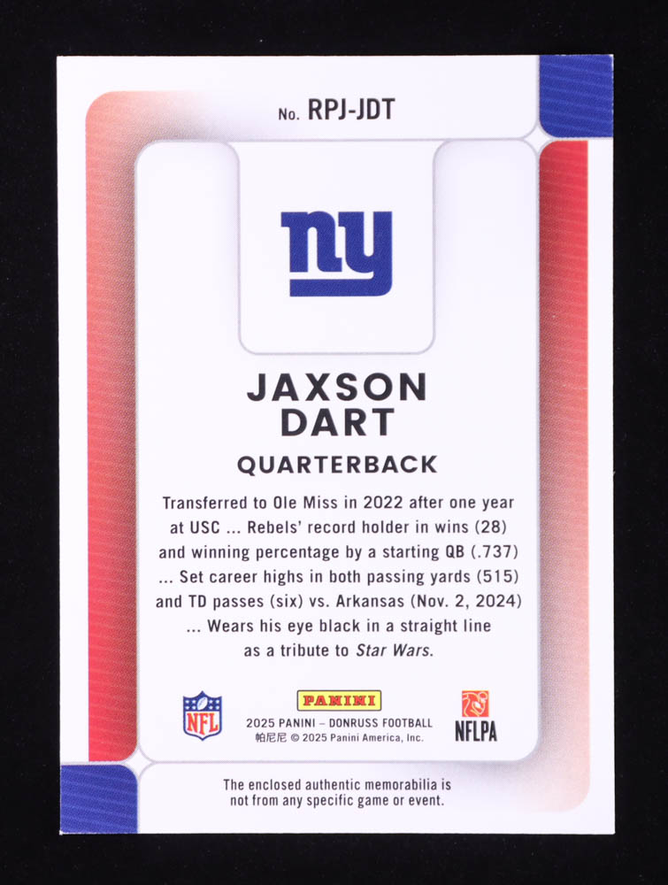 Jaxson Dart 2025 Donruss Rookie Phenom Jerseys #29 RC
