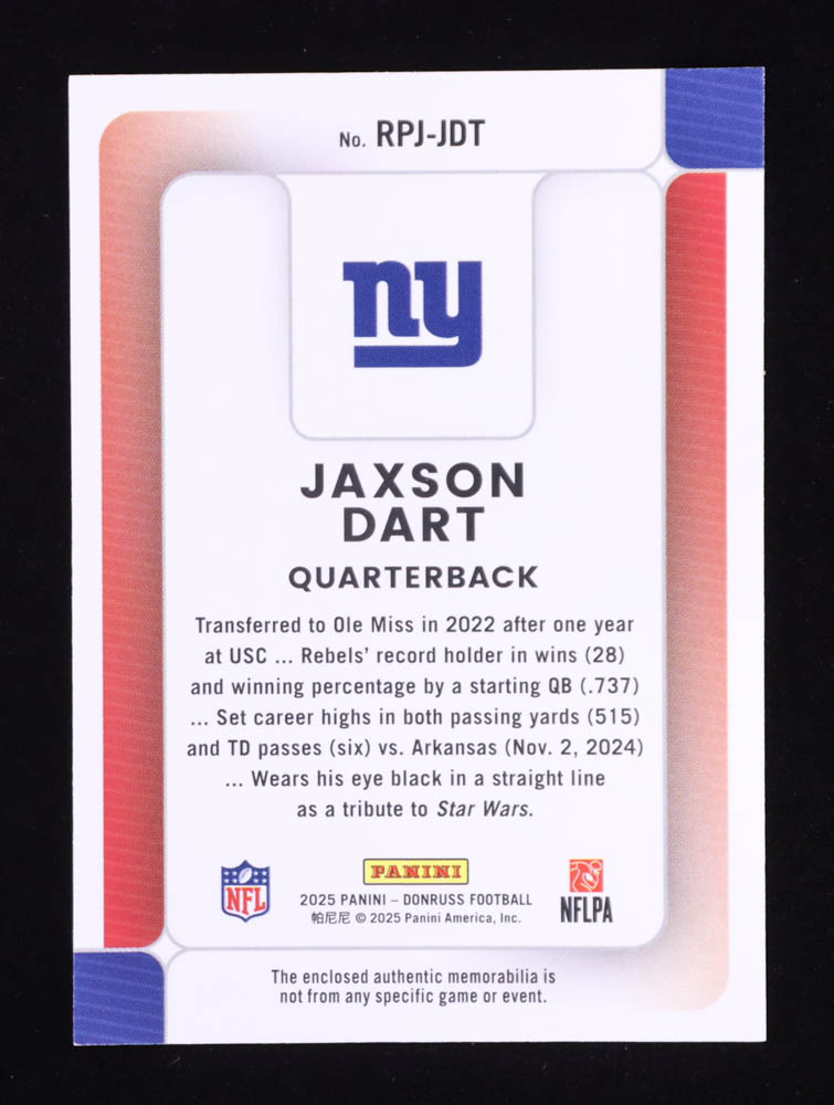 Jaxson Dart 2025 Donruss Rookie Phenom Jerseys #29 RC