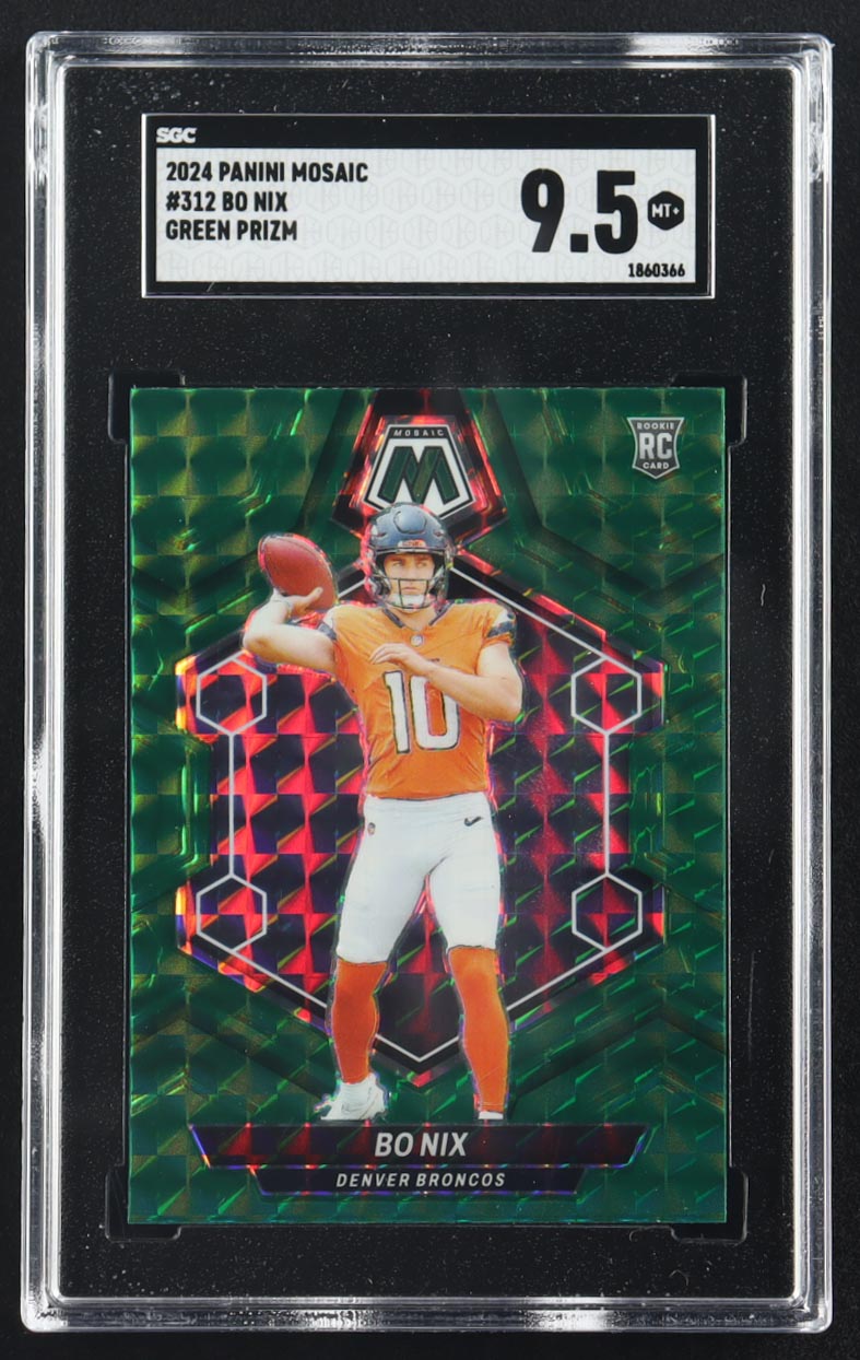 Bo Nix 2024 Panini Mosaic Green Prizm #312 RC (SGC 9.5)