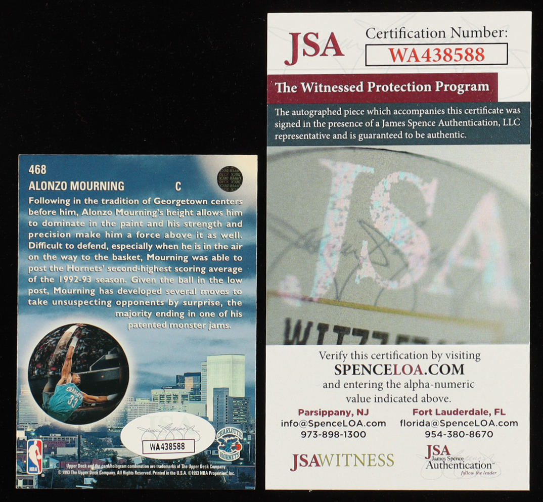 Alonzo Mourning Signed 1993-94 Upper Deck #468 SKL (JSA)