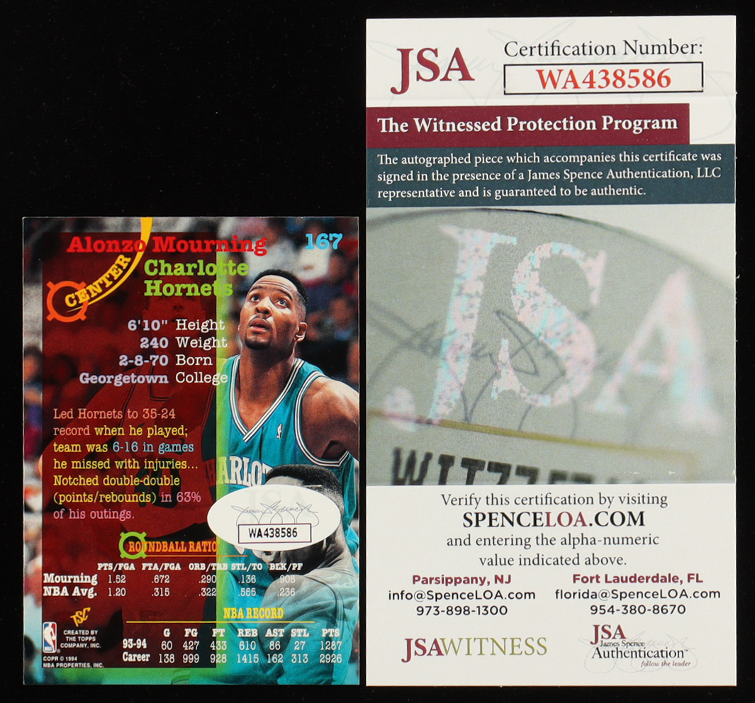 Alonzo Mourning Signed 1994-95 Stadium Club Super Teams NBA Finals #167 (JSA)