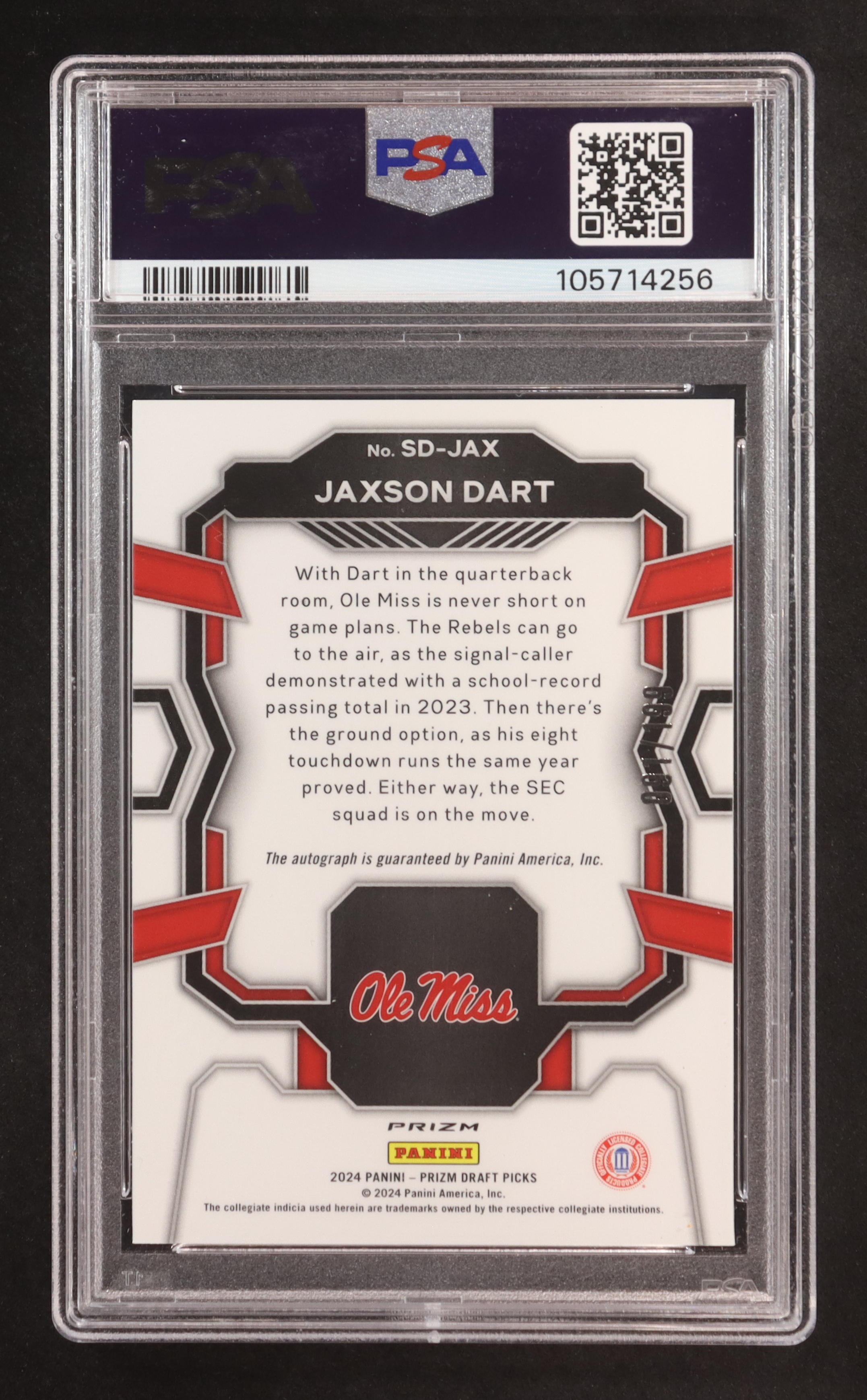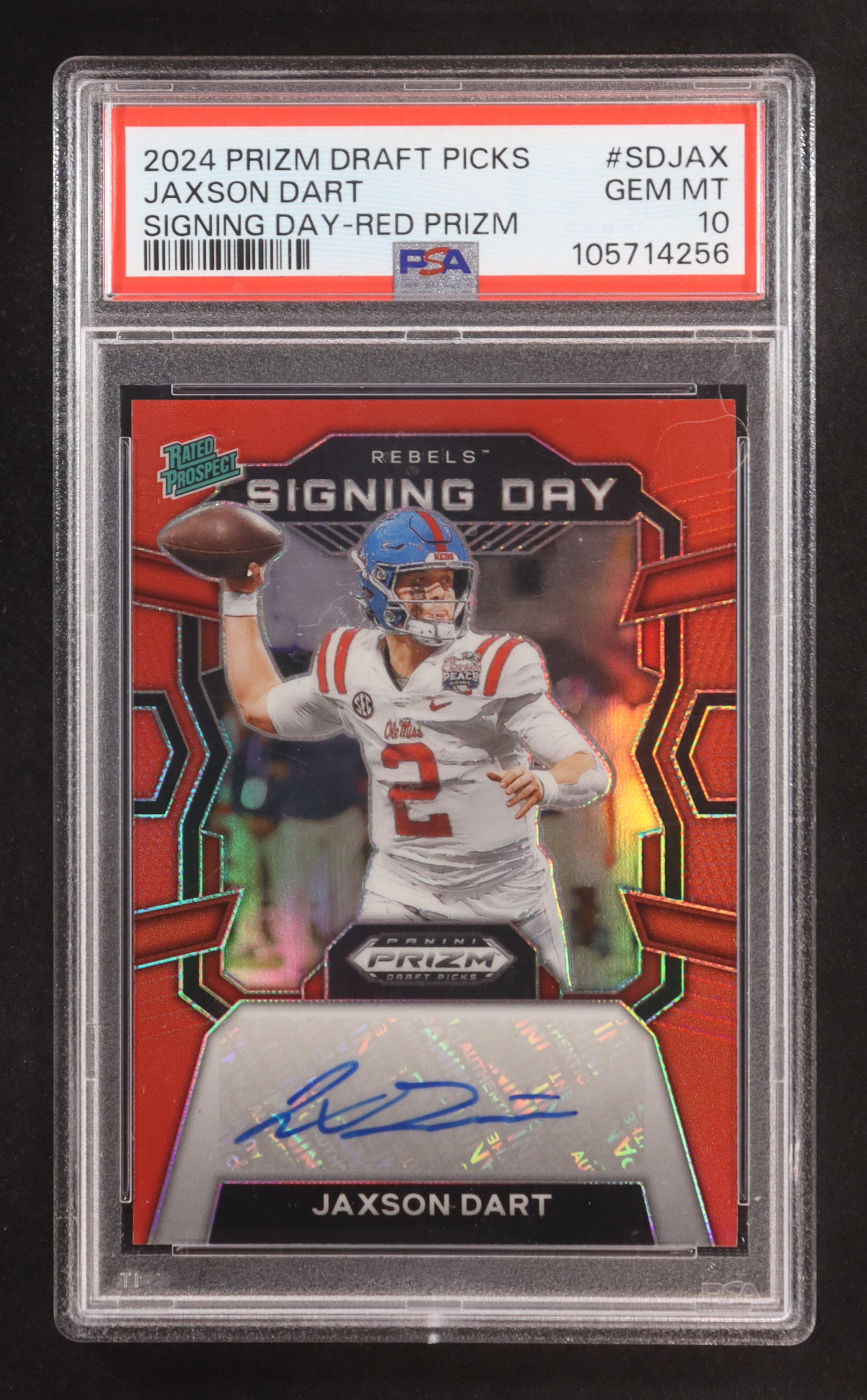 Jaxson Dart 2024 Panini Draft Picks Signing Day- Red Prizm #SD-JAX RC #091/199 (PSA 10)
