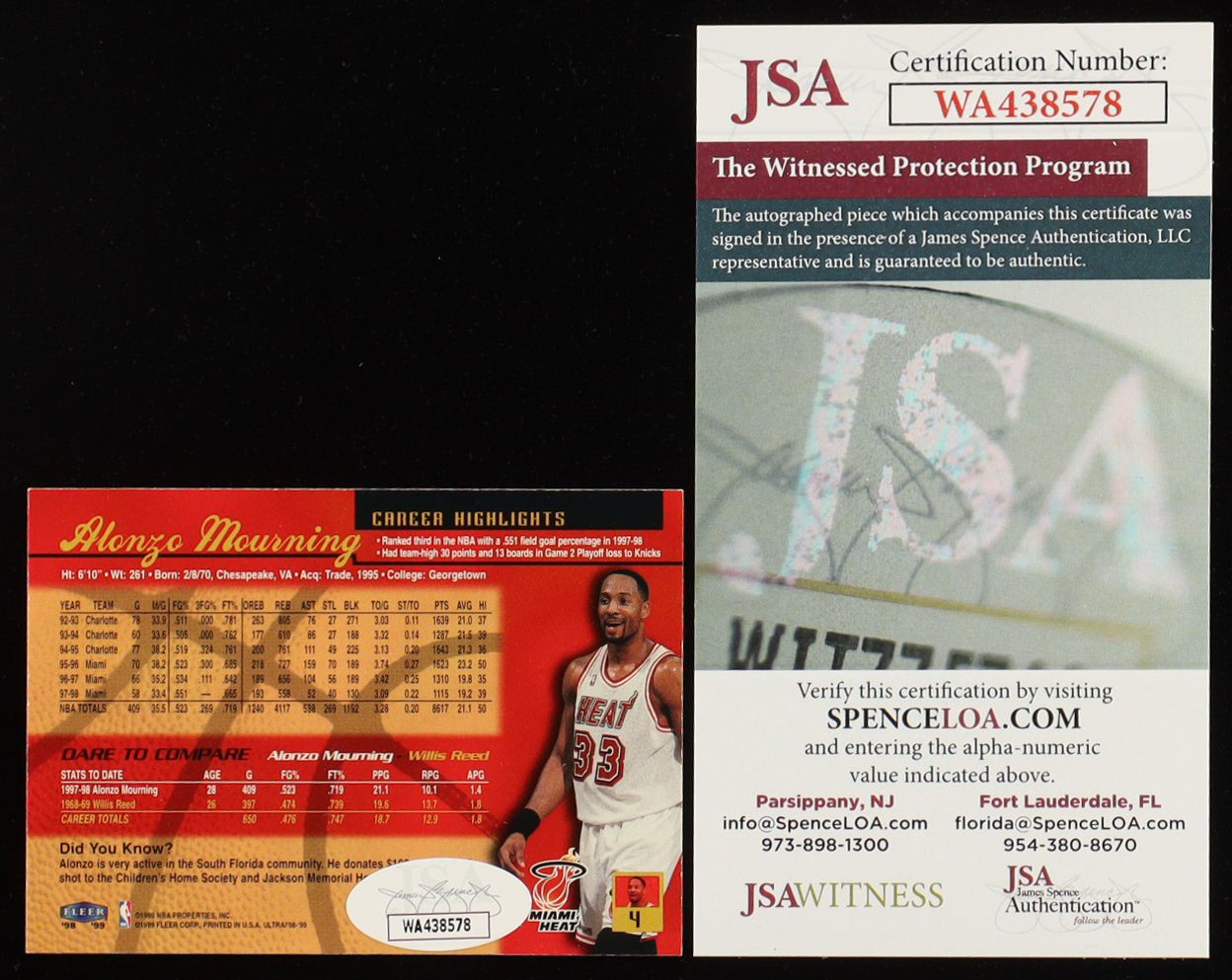 Alonzo Mourning Signed 1998-99 Ultra #4 (JSA)