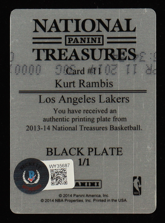 Kurt Rambis Signed 2013-14 Panini National Treasures Black Printing Plate #11 #1/1 (Beckett)
