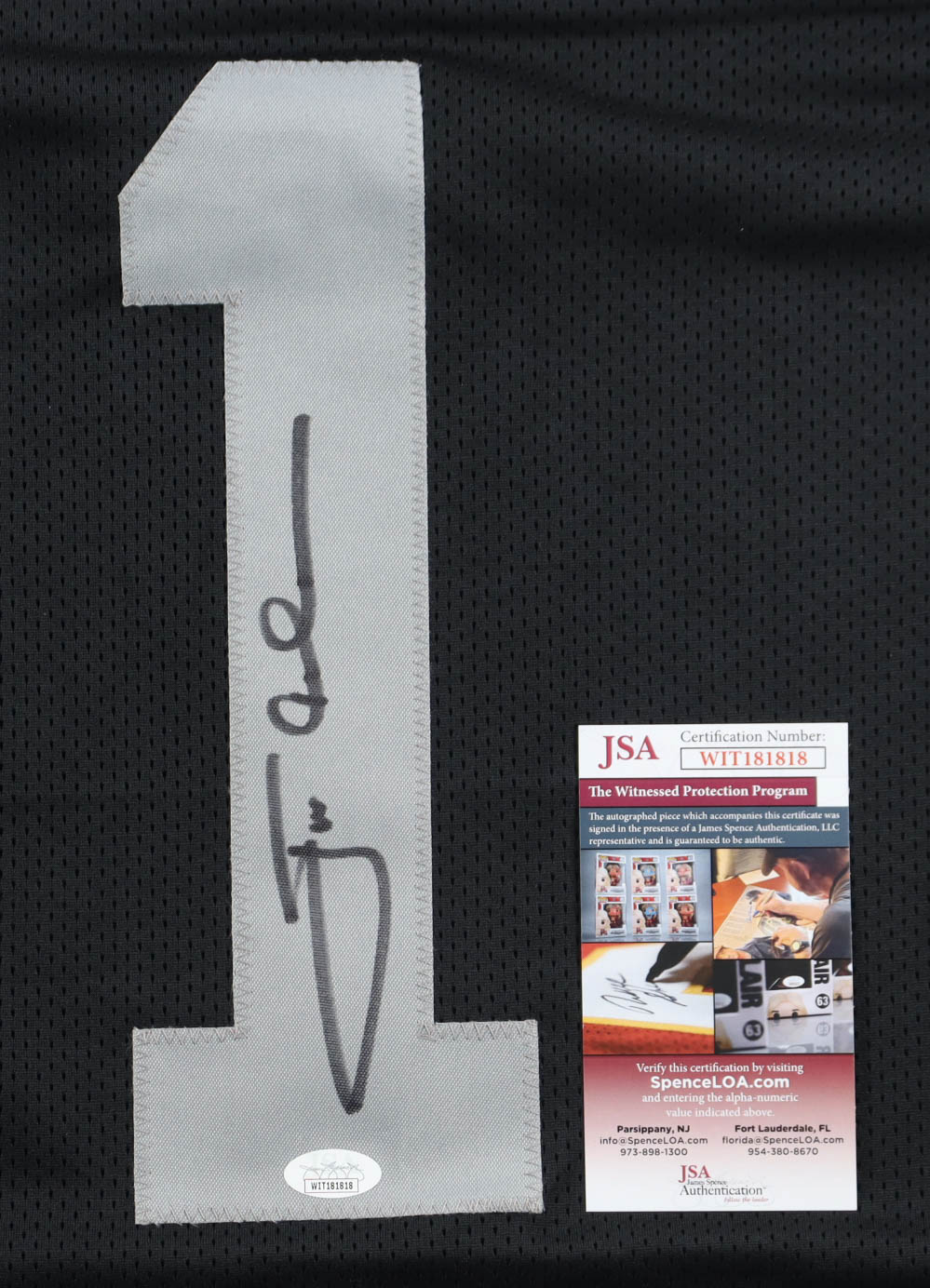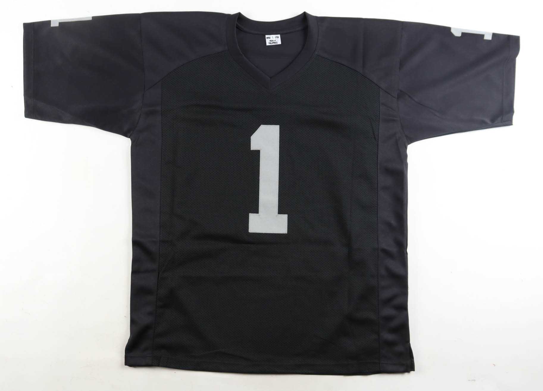 Custom jersey with everything sewn on, size L. Hand-signed by Jon Gruden.