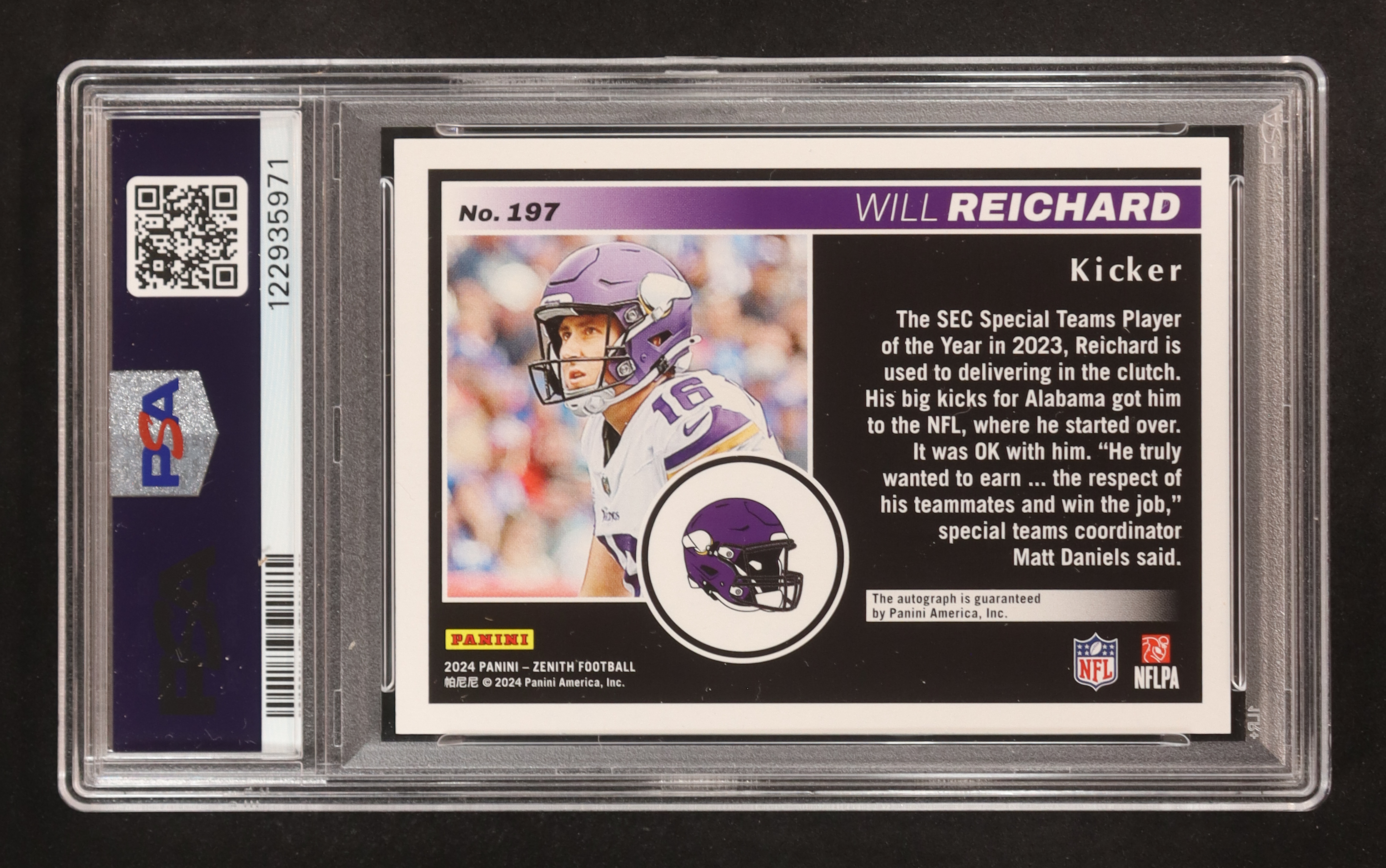 Will Reichard 2024 Zenith Rookies Autographs Two Minute Drill #197 RC (PSA 8 | Autograph Graded PSA 10)