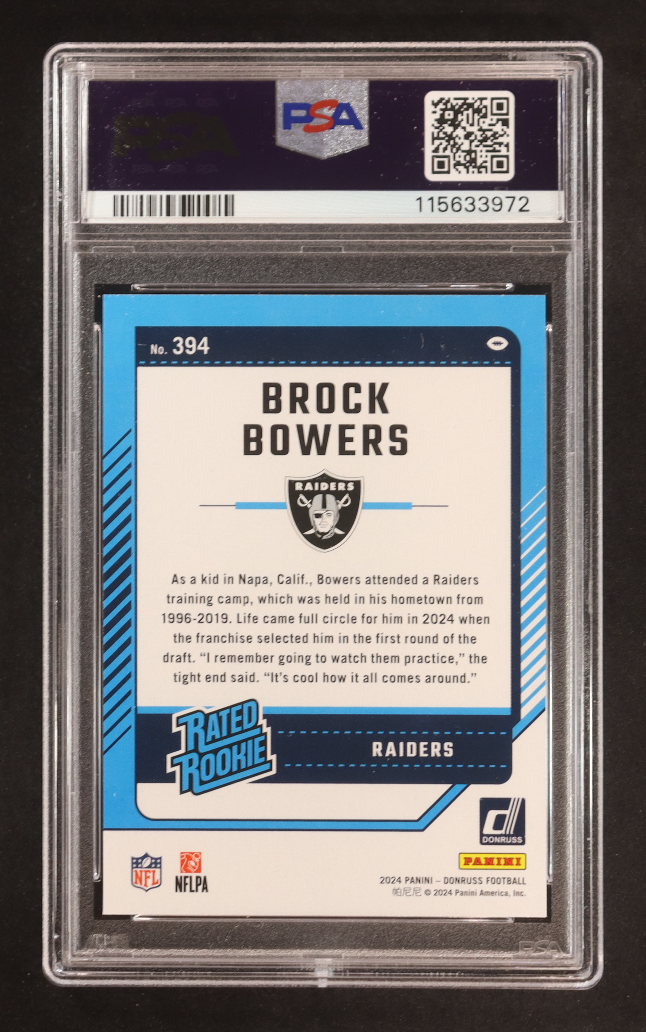 Brock Bowers 2024 Donruss #394 RR RC (PSA 9)