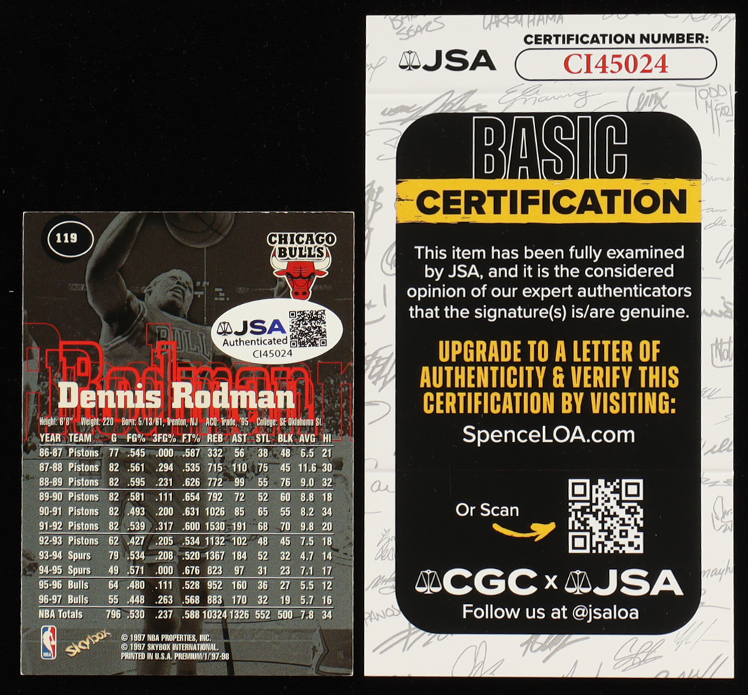 Dennis Rodman Signed 1997-98 SkyBox Premium #119 (JSA)