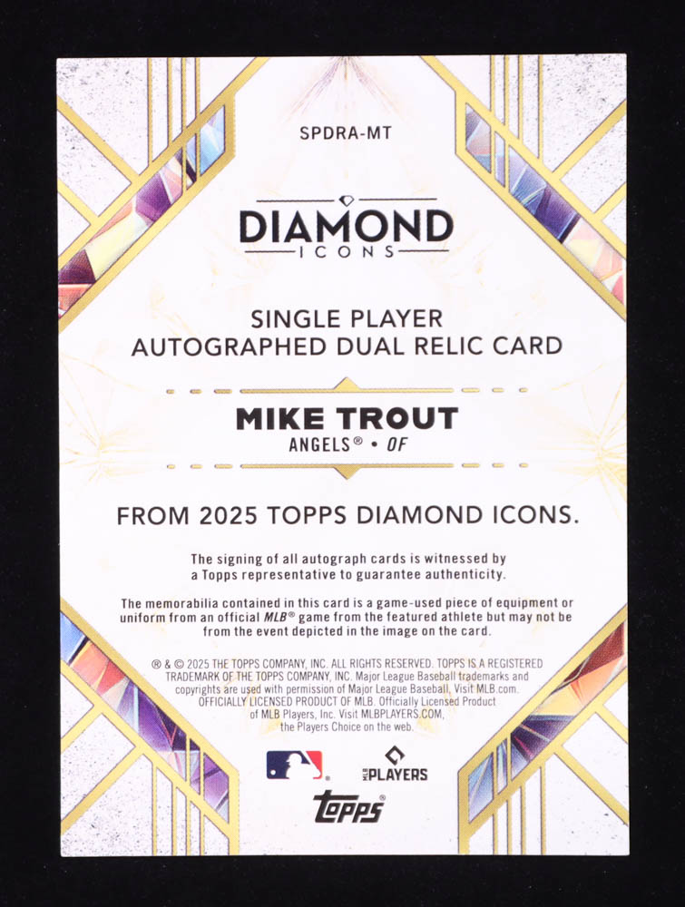 Mike Trout 2025 Topps Diamond Icons Single Player Dual Relic Autographs #SPDRAMT #21/25