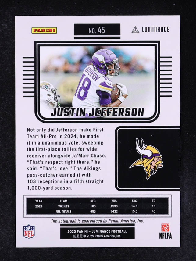 Justin Jefferson 2025 Panini Luminance Autographs #45 #22/25