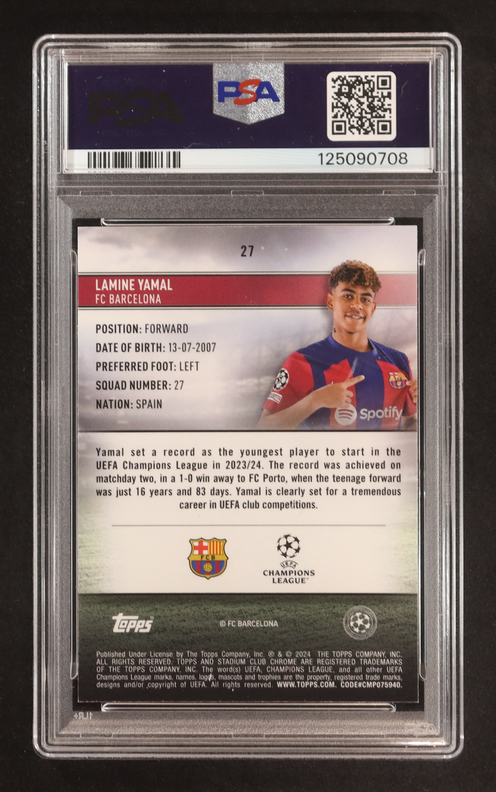 Lamine Yamal 2023-24 Stadium Club Chrome UEFA Champions League #27 RC (PSA 10)
