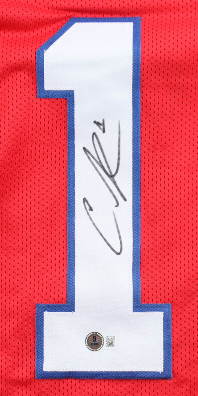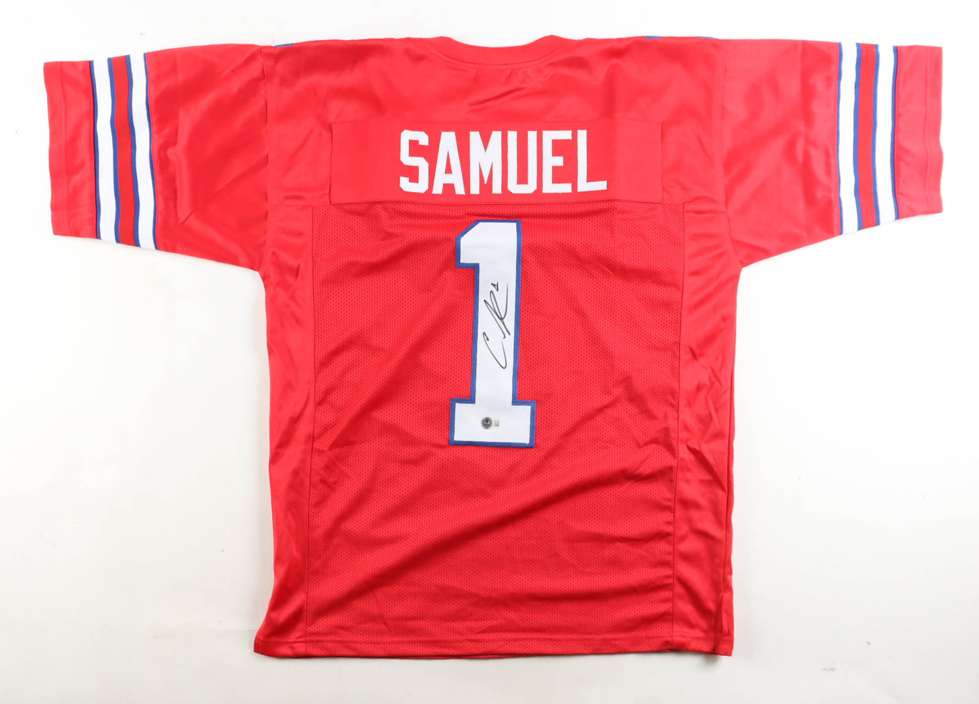 Custom jersey with everything sewn on, size XL. Hand-signed by Curtis Samuel.