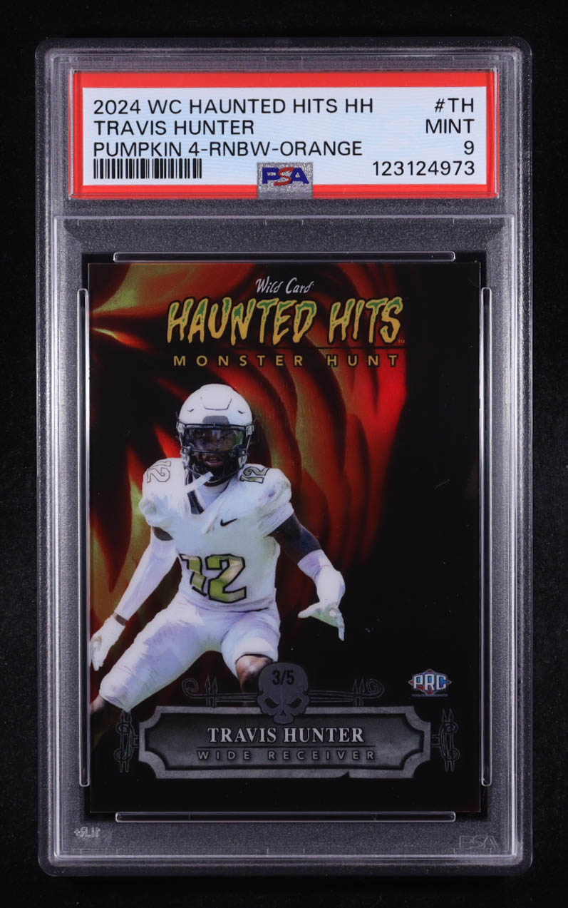 Travis Hunter 2024 Wild Card Haunted Hits Monster Hunt Pumpkin Rainbow Orange #TH #3/5 RC (PSA 9)