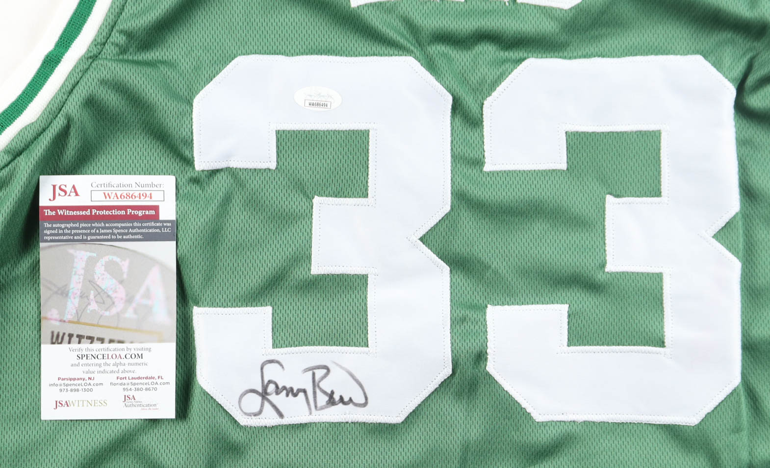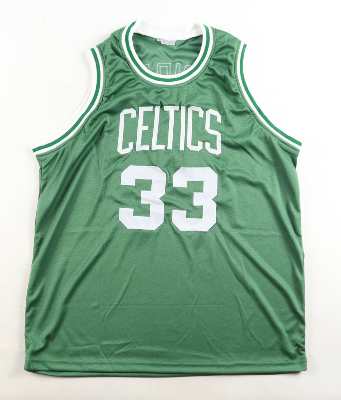 Custom jersey with everything sewn on, size XL. Hand-signed by Larry Bird (HOF).