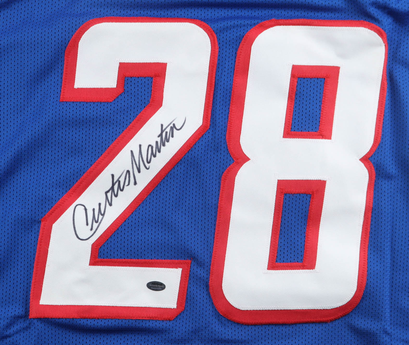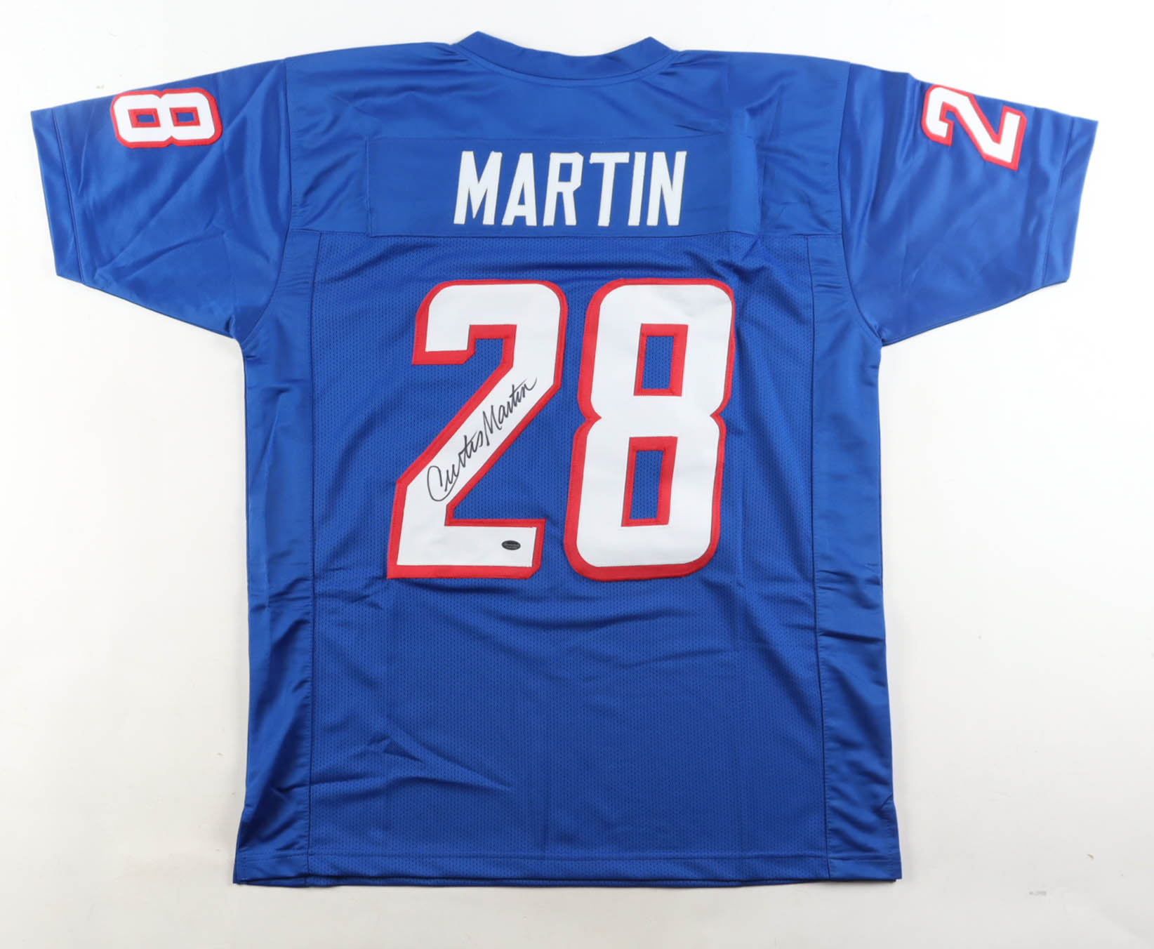 Custom jersey. Everything is sewn on, size XL. Hand-signed by Curtis Martin (HOF).