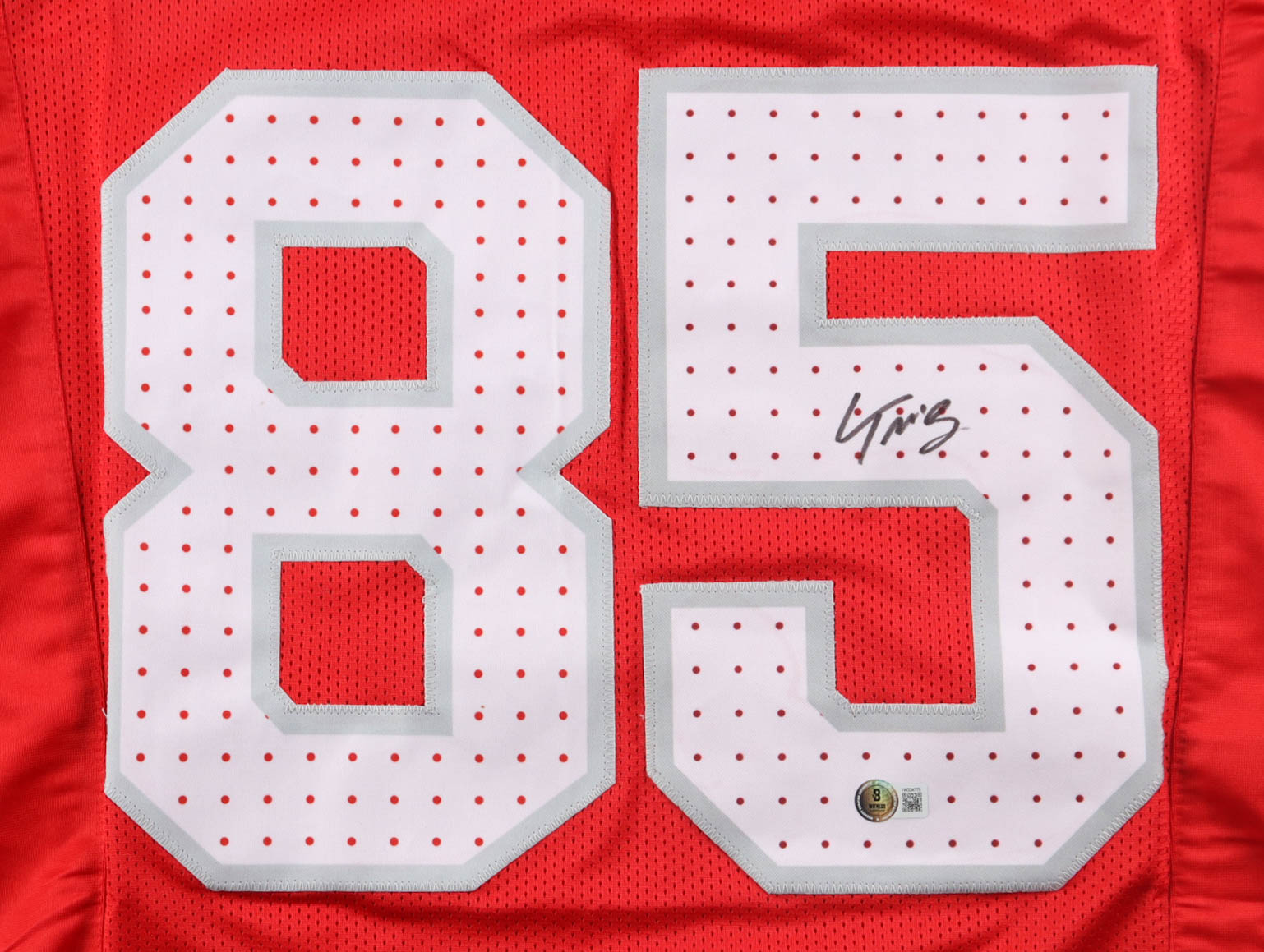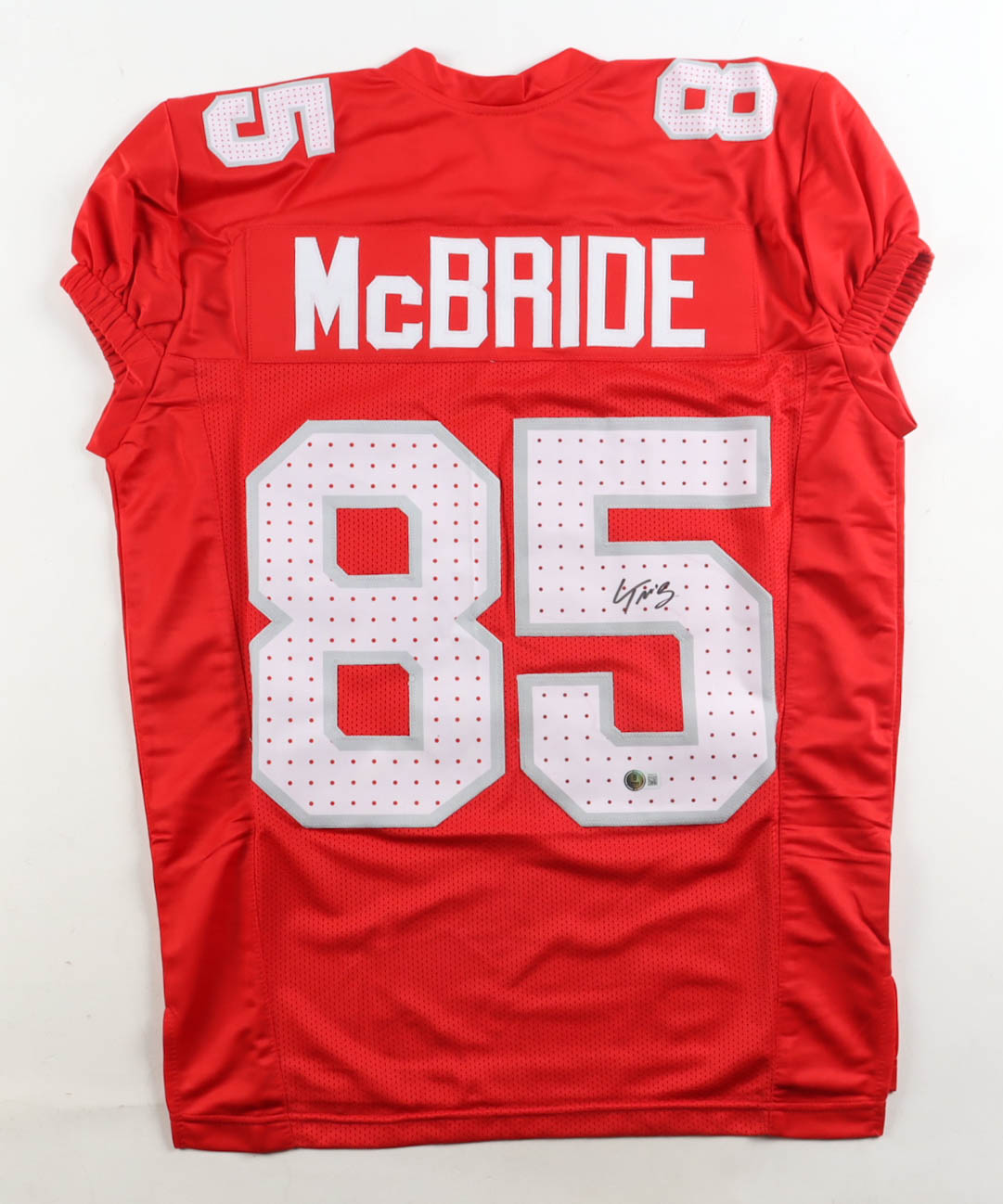 Custom jersey. Everything sewn on, size XL. Hand-signed by Trey McBride. Please note, glue is visible through the reverse number.