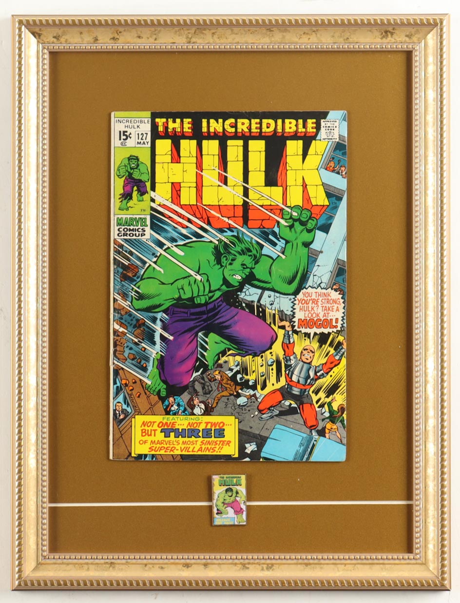 1970 "The Incredible Hulk" Issue #127 Custom Framed Marvel Comic Book Display With Marvel Hulk Pin