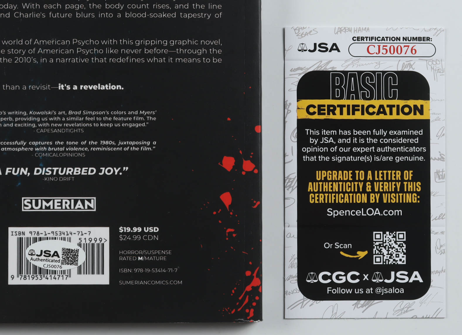 2024 Sumerian comic book has been hand-signed by Christian Bale (Patrick Bateman).