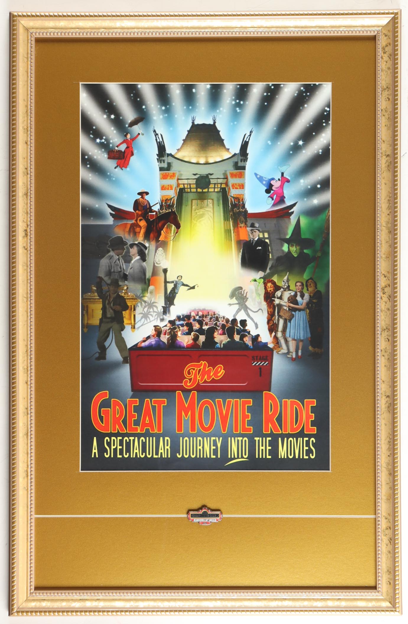 Disney's "The Great Movie Ride" Custom Framed Art Print Display with Vintage Pin