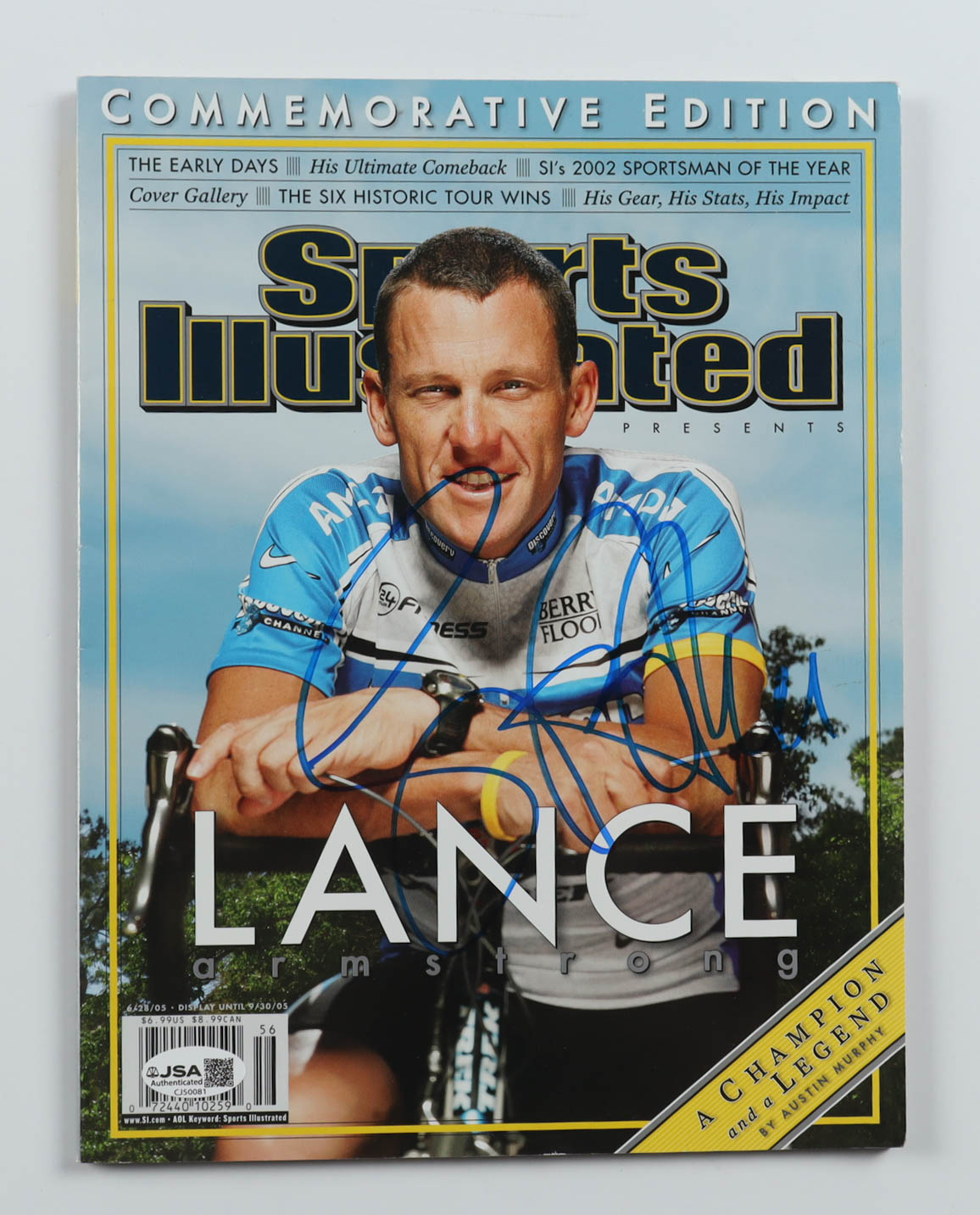 June 2005 Sports Illustrated magazine has been hand-signed on the front cover by Lance Armstrong.