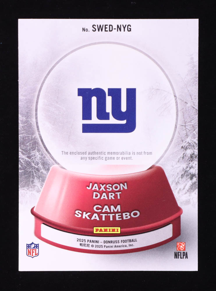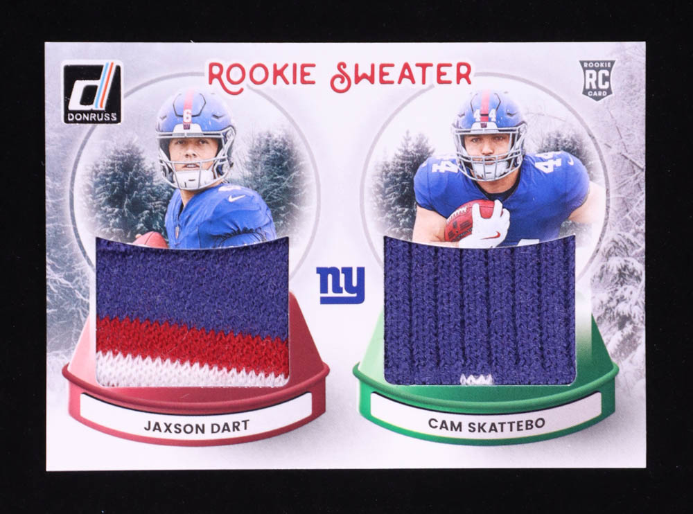 Cam Skattebo / Jaxson Dart 2025 Donruss Rookie Holiday Sweater Dual #3 RC