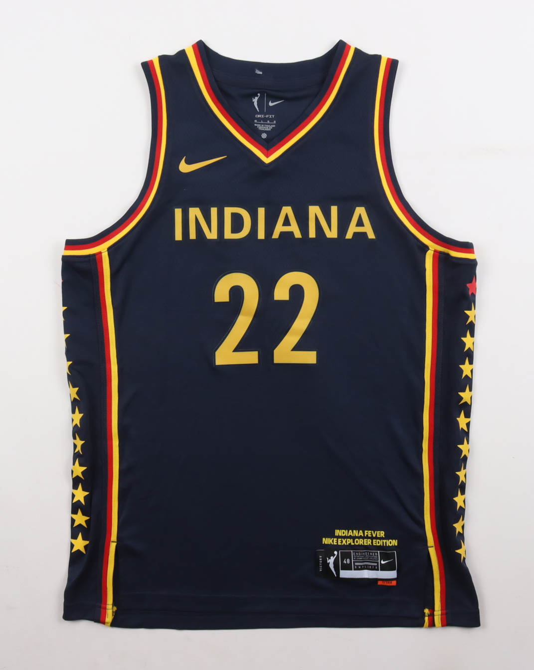 Nike authentic jersey with everything pressed on, size 48. Hand-signed by Caitlin Clark (Indiana Fever).